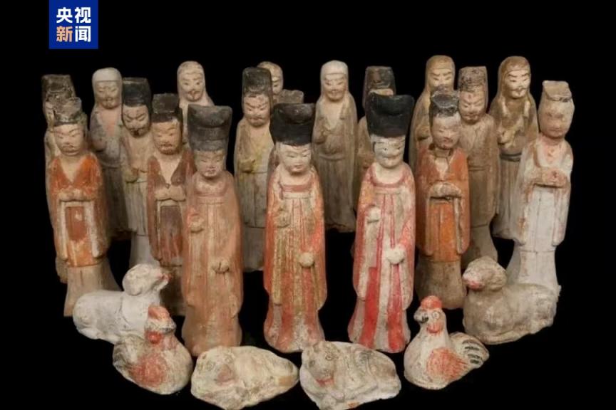 段文振家族墓地虽遭盗掘破坏,但其墓葬结构以及残留的墓志、石门、壁画、玉器、玻璃器和陶俑群为研究周隋之际的礼制、官职、文化、经济及其所反映的朝代更迭、社会变化和门阀制度提供了重要的实物资料。自段文振墓出土镇墓武士俑、镇墓兽、骑马俑、风帽俑、笼冠俑、动物俑等陶俑共144件,分别出土于壁龛和墓室内,皆为泥质灰陶,表面施彩多中空。该墓随葬陶俑种类丰富,形态明晰,显示出较为明显的隋代晚期特征。